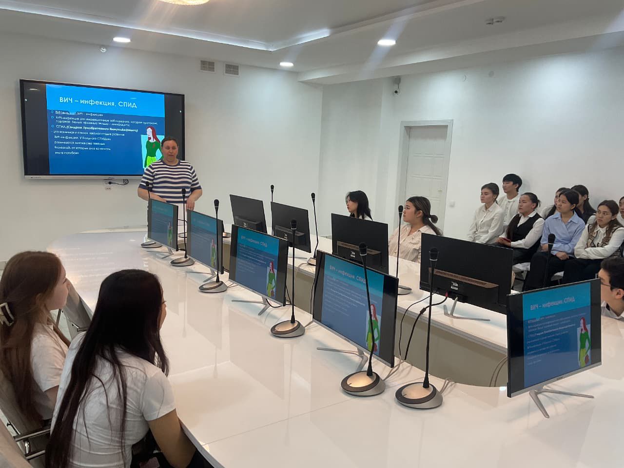 АИТВ инфекциясының профилактикасы жөніндегі орталығының мамандары студенттер үшін ойын түріндегі интерактивті іс-шара өткізді, оның барысында АИТВ жұқтыру жолдары мен қорғау шаралары туралы еске салды. Бұл формат ақпаратты жақсы игеруге және оны жастар үшін түсінікті және есте қаларлық етуге мүмкіндік береді.