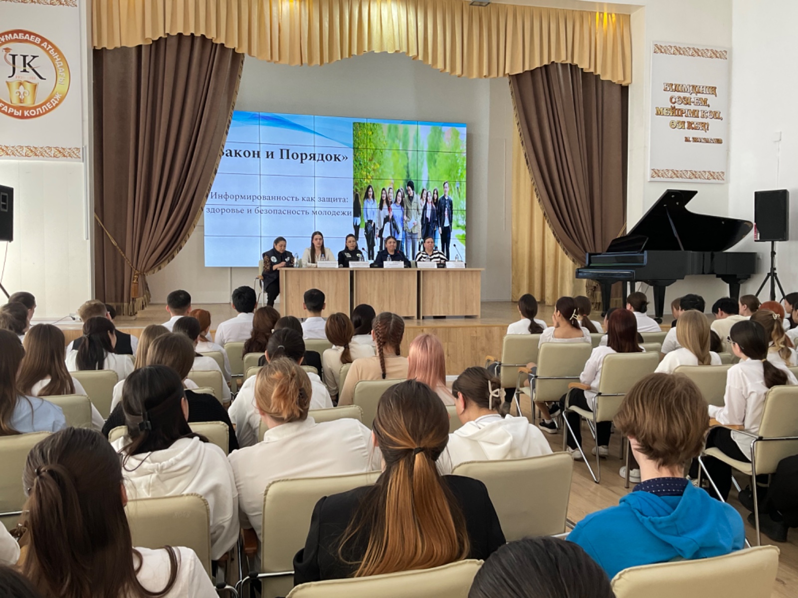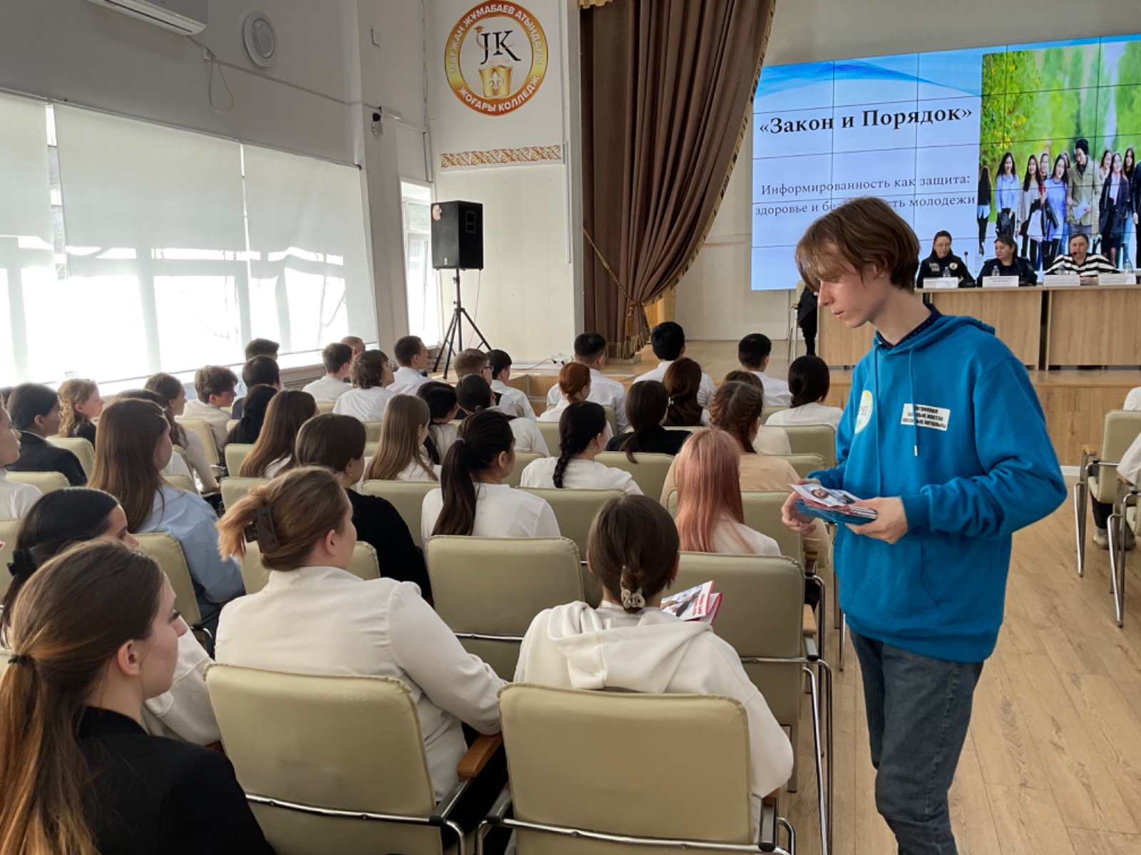 Әрбір спикер заңнаманы сақтау, құқық бұзушылықтың алдын алу және денсаулықты нығайту мәселелерін қозғай отырып, өз тақырыбын ұсынды. Сөз сөйлегеннен кейін студенттер өздерін қызықтырған сұрақтарын қойып, тікелей мамандардан жауап ала алды.