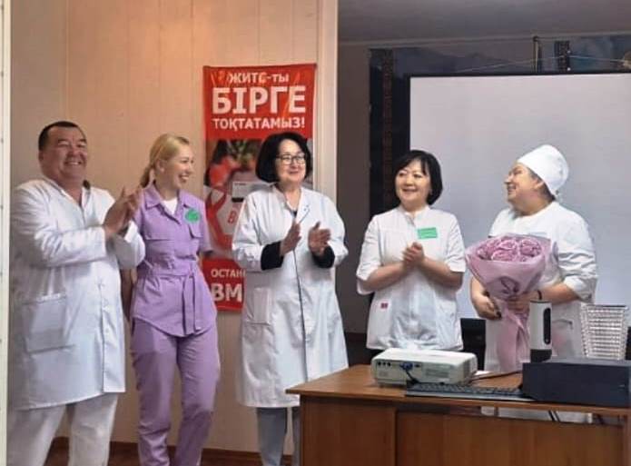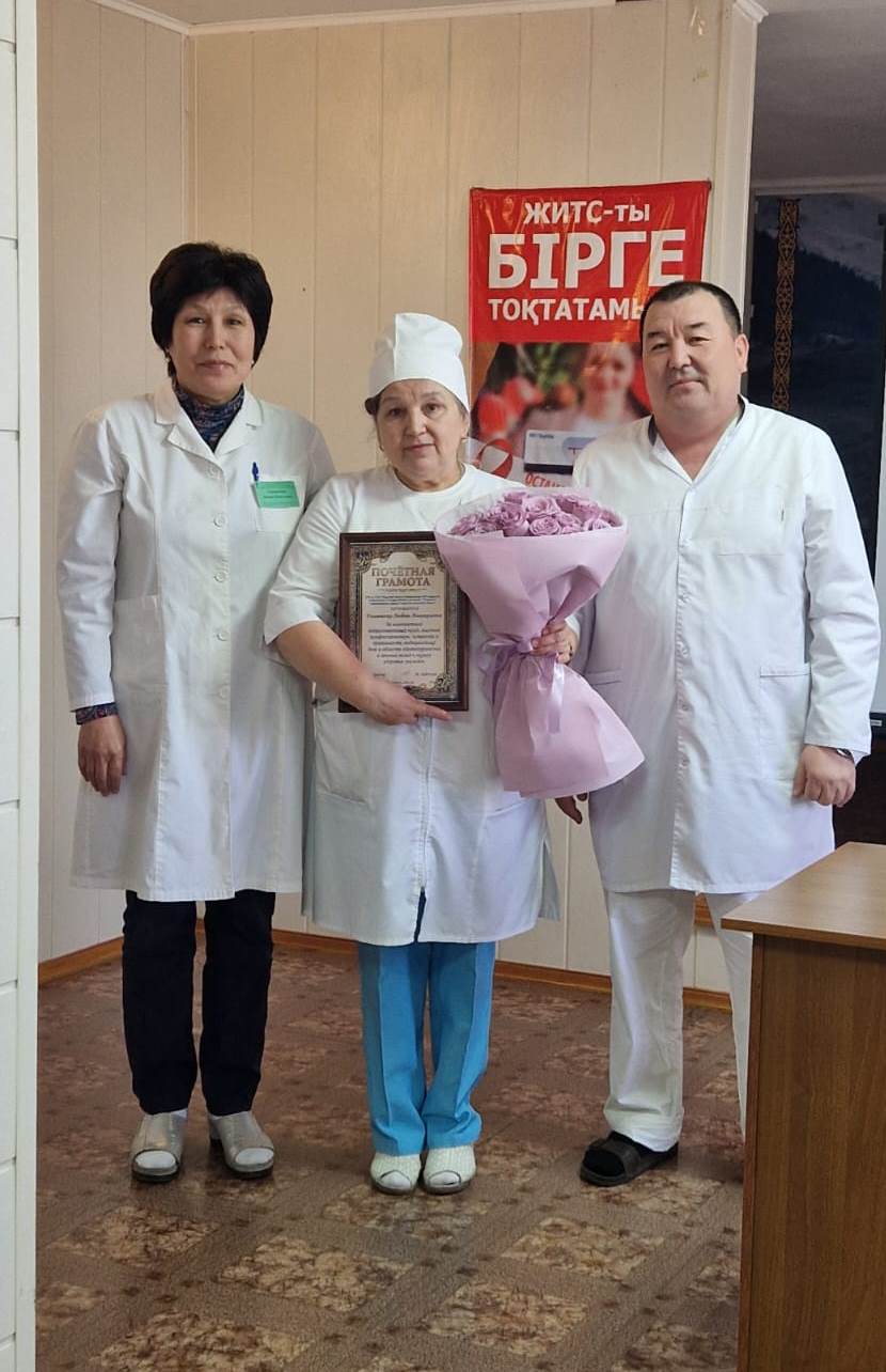 Бүгін Облыстық АИТВ инфекциясының профилактикасы жөнінедегі орталығының директоры Мамадияр Шайзадаұлы Байғұлов ұжыммен мейірбике Любовь Дмитриевна Головченконы зейнеткерлік жасқа толуымен құттықтады.