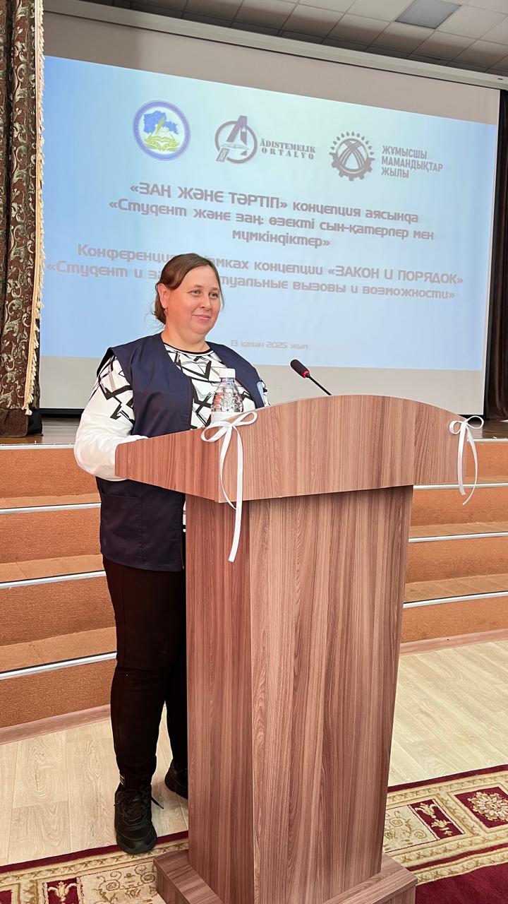 «Демео» коммерциялық мекемесінің оқытушы-заңгері Светлана Зайцева заңға бағынатын мінез-құлық тақырыбын жалғастырып, студенттер мен білім беру ұйымдарына қатысты құқықтық нормалар туралы айтты.